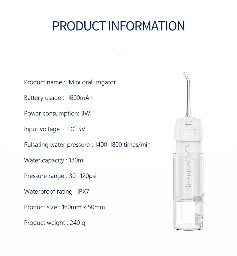 Dubinsko čišćenje s jakim pritiskom: čistač za vodu usvaja najnoviju pulsnu tehniku kako bi ponudio 4 načina rada s rasponom tlaka između 30-90 psi i brzinom pulsa od 1400-1800 puta/minuti, kako bi ponudio vodu visokog intenziteta koja čisti 99,99% istezanje zuba, posebno dizajniran za parodontitis, aparatić.