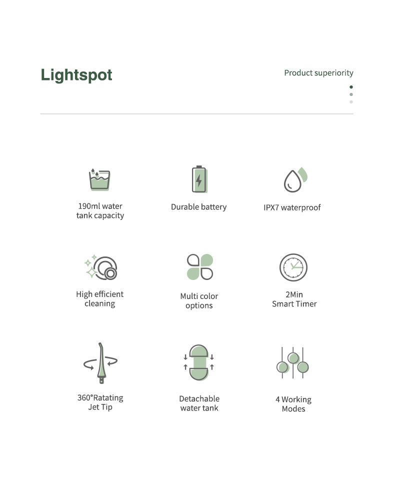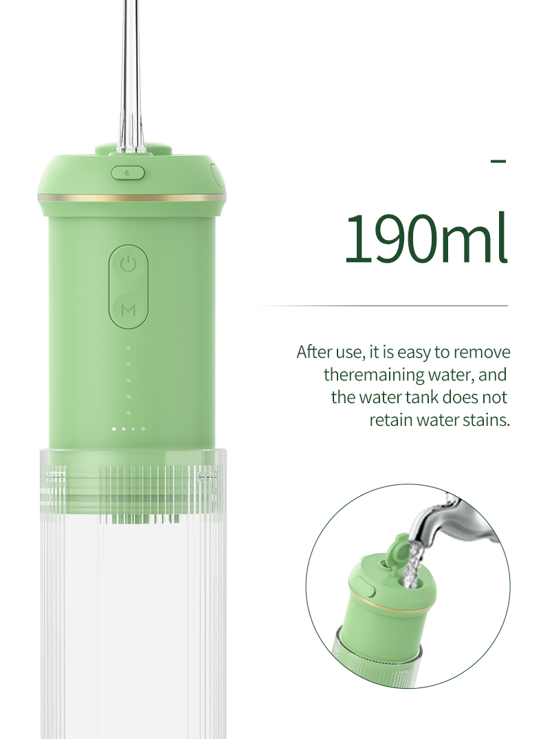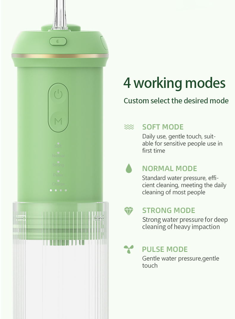 Dubinsko čišćenje s jakim pritiskom: čistač za vodu usvaja najnoviju pulsnu tehniku kako bi ponudio 4 načina rada s rasponom tlaka između 30-90 psi i brzinom pulsa od 1400-1800 puta/minuti, kako bi ponudio vodu visokog intenziteta koja čisti 99,99% istezanje zuba, posebno dizajniran za parodontitis, aparatić.