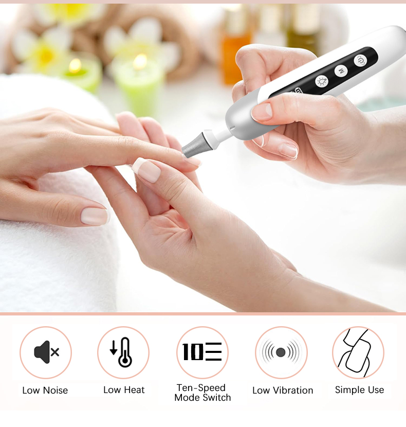 - BEŽIČNO I PUNJIVO: bežična električna bušilica za nokte savršena je za putovanja i nudi impresivnih 10 sati rada. Prikladan alat za pedikuru stopala i sve vaše potrebe za mani pedi. Naša turpija za nokte je prikladna za prirodne, akrilne, gel i nokte u prahu