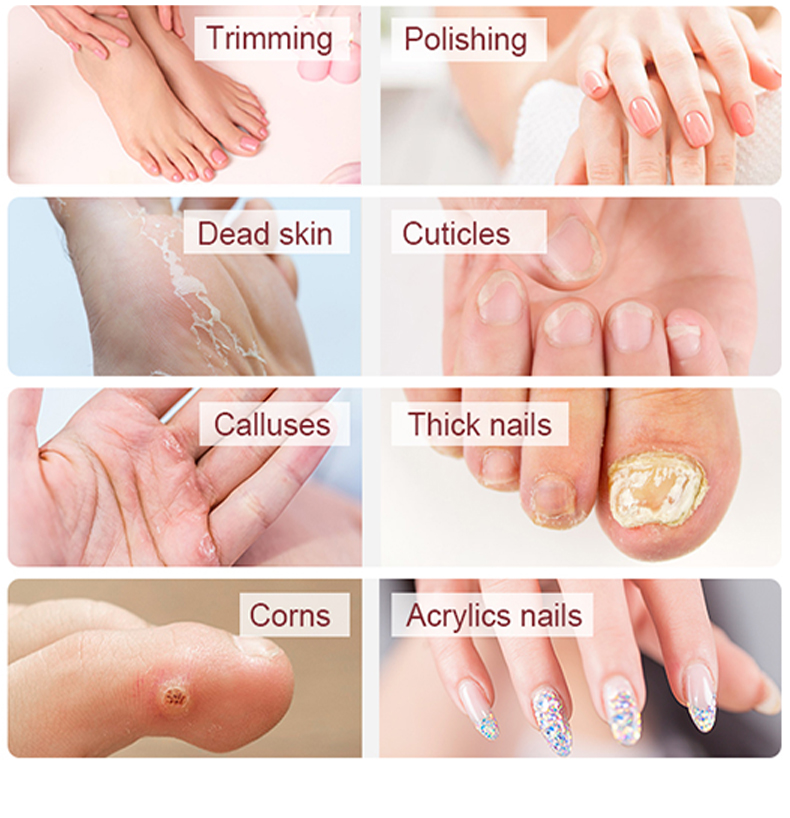 - 10 POSTAVKI BRZINE: Doživite snagu našeg električnog seta za manikuru, koji sadrži 10 progresivnih postavki brzine i svestrane rotacije u smjeru kazaljke na satu i suprotno od njega. Efile bušilica za nokte jamči precizno turpijanje na debelim noktima na rukama i nogama te je prilagođena svim tipovima kože, uključujući osobe s dijabetesom